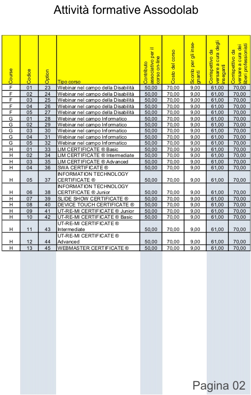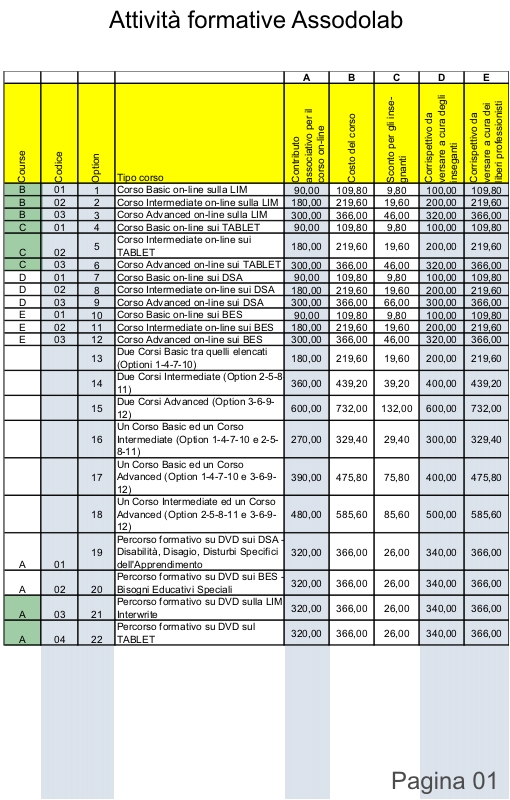 attenersi al prezzo pubblicato nei diversi «Progetti formativi»